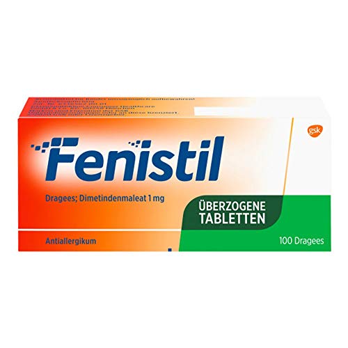 Fenstil DrageesWirkstoff: Dimetinden Dimetinden lindert starken Juckreiz bei Nesselsucht, Neurodermitis und Windpocken, bei der Zuckerkrankheit oder nach Insektenstichen. Bei allergischen Erkrankungen lindert es zudem Symptome wie Rötungen und Schwellungen, tränende Augen, geschwollene Nasenschleimhäute, Niesen, Nasenfluss und Atemnot. Anwendungsgebiete:Allergischer Schnupfen (z.B. Heuschnupfen) Arzneimittelallergie Juckreiz Nahrungsmittelallergie Nesselausschlag (Urticaria) Neurodermitis