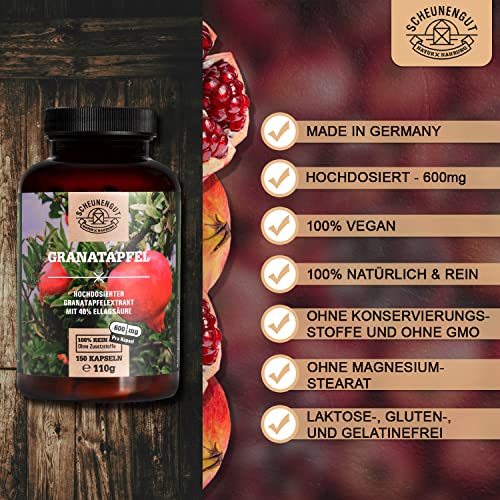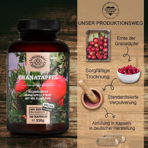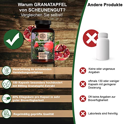Specification: Granatapfel Extrakt Kapseln – 150 Stück je 600mg – WICHTIG: 45:1 Extrakt (=81.000mg reiner Granatapfel je 3 Kapseln…