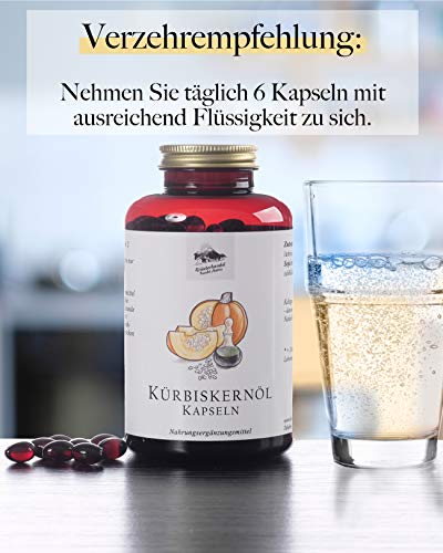 OPTIMALE DOSIERUNG: Enthält pro Kapsel 500 mg erstklassiges Kürbiskernöl. Daraus ergibt sich eine empfohlene Tagesdosis von 6 Kapseln sowie ein Vorrat für 2,5 Monate