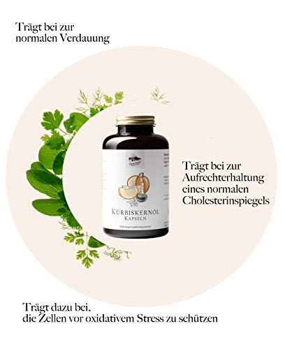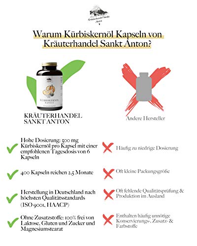 Specification: KRÄUTERHANDEL SANKT ANTON – 400 Kürbiskernöl Kapseln – 3000 mg erstklassiges Kürbiskernöl – Hochdosiert – Vitamin E…