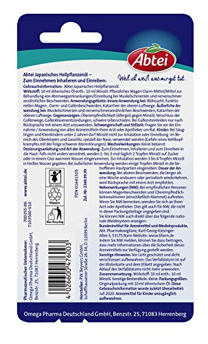 Specification: Abtei Japanisches Heilpflanzenöl – 100% naturreines Minzöl zum Einnehmen, Inhalieren und Einreiben – bei Erkältung…