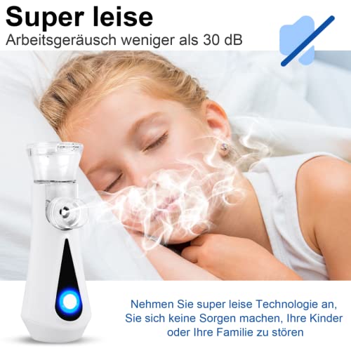 【15ml GROßE KAPAZITÄT & 30dB GERINGES RAUSCHEN】 Unser Inhaliergerät nimmt ultra-leise Technologie und das Arbeitsgeräusch ist weniger als 30dB, so dass Sie sich keine Sorgen machen müssen, Ihre Kinder oder Haustiere zu stören. Und unser Vernebler ist mit einer großen Kapazität ausgestattet, die 15 ml Flüssigkeit aufnehmen kann, so dass Sie nicht häufig Flüssigkeit hinzufügen müssen.