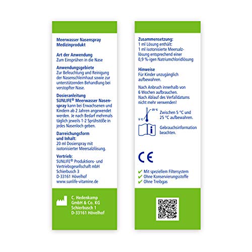 Specification: Sunlife Meerwasser Nasenspray, 20 ml, 114969