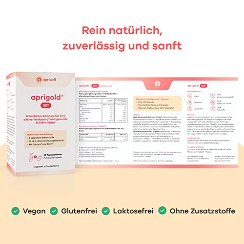 🔬 𝐖𝐢𝐬𝐬𝐞𝐧𝐬𝐜𝐡𝐚𝐟𝐭𝐥𝐢𝐜𝐡𝐞𝐫 𝐆𝐨𝐥𝐝𝐬𝐭𝐚𝐧𝐝𝐚𝐫𝐝 – Das Aprigold Set basiert auf der Entdeckung, dass bestimmte Darmbakterien für die Darmbeweglichkeit entscheidend sind und sich diese von ausgewählten Ballaststoffen ernähren. Es kombiniert 8 essenzielle Ballaststoff-Gruppen mit 5 Bakterienkulturen, die unsere Darmflora täglich nutzt. Aprigold enthält auch die beiden patentierten Wirkstoffe Sunfiber und Fibersol-2, deren Wirksamkeit in über 200 Studien belegt wurde.
