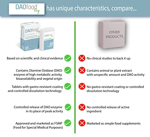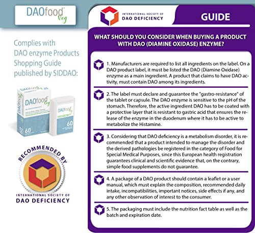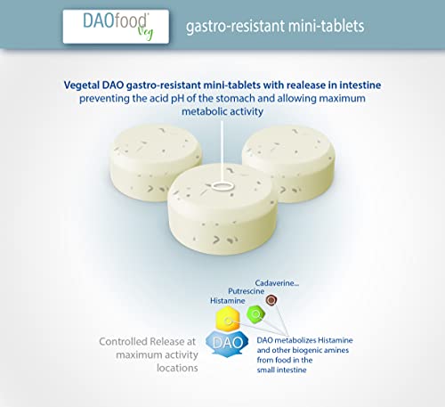 Specification: DAOfood Veg – Management des DAO-Mangel – Pflanzliches DAO-Enzym – Dispenser 60 Mini Gastro-resistente Tabletten
