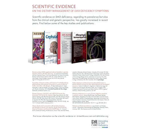 ✔ Für die Management von neurologischen, dermatologischen, gastrointestinalen und muskulären Symptomen, die durch DAO-Mangel / Histaminintoleranz verursacht werden.