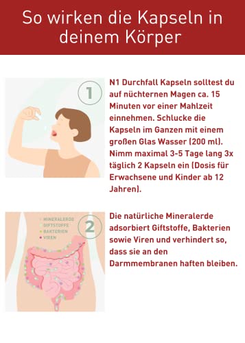 ๐๐๐ ๐๐๐๐๐๐๐๐: Die Wirkstoffe in den N1 Durchfall Kapseln werden vom Darm nicht aufgenommen. Natรผrliche Mineralerde adsorbiert Toxine, Bakterien und Viren und verhindert so, dass sie an den Darmmembranen haften bleiben.