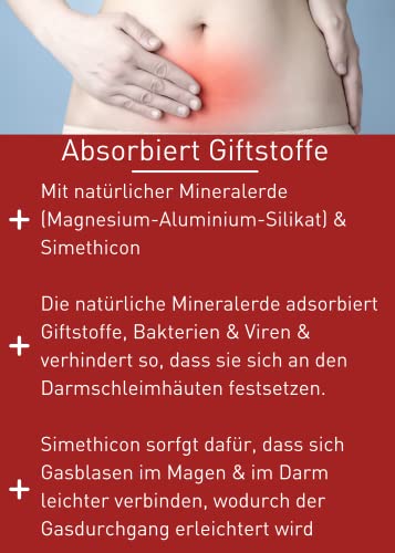 π©ββοΈ πππΓπππππ πππππ ππππππππ ππππππππ: Die Wirkstoffe in N1 Reizdarm Kapseln sind natΓΌrliche Mineralerde (Magnesium-Aluminium-Silikat) und Simethicon. Diese werden vom Darm nicht aufgenommen. Die natΓΌrliche Mineralerde adsorbiert Giftstoffe, Bakterien und Viren und verhindert so, dass sie sich an den Darmschleim- hΓ€uten festsetzen. Simethicon ermΓΆglicht es, dass sich Gasblasen im Magen und im Darm leichter verbinden, wodurch der Gasdurchgang erleichtert wird.