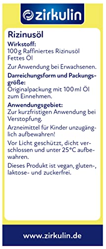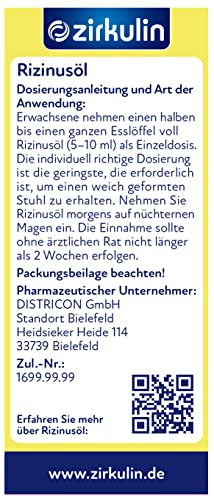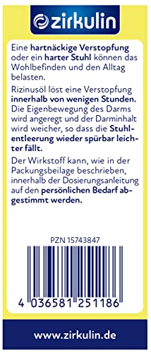 Specification: Zirkulin Raffiniertes Rizinusöl, pflanzliches Abführmittel zur kurzfristigen Anwendung bei Verstopfung, Lösung innerhalb…